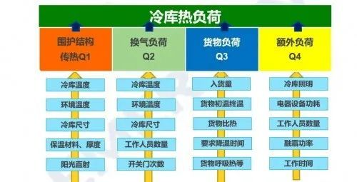 通過如圖,我們可以看出影響冷庫制冷需求量也就是冷庫熱負荷的因素主要有圍爐結(jié)構(gòu)的穿熱力、換氣負荷、貨物負荷、額外負荷四個方面。